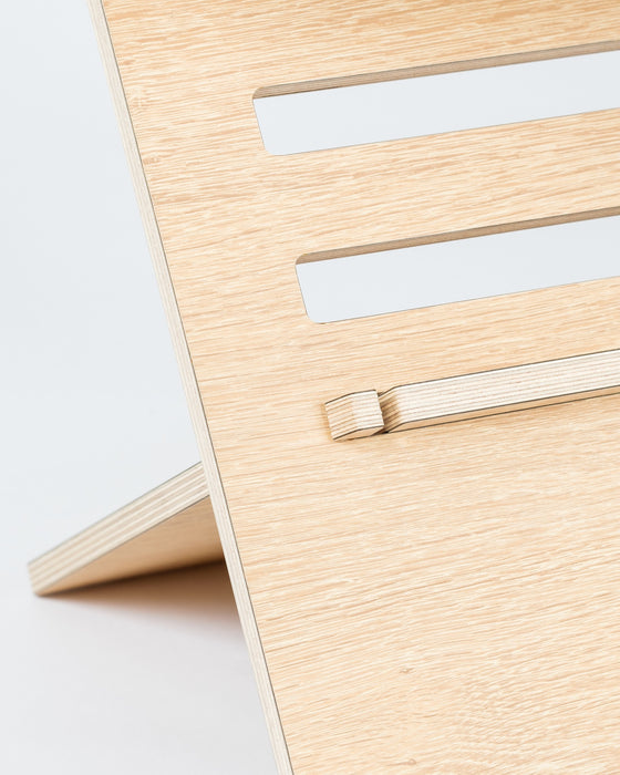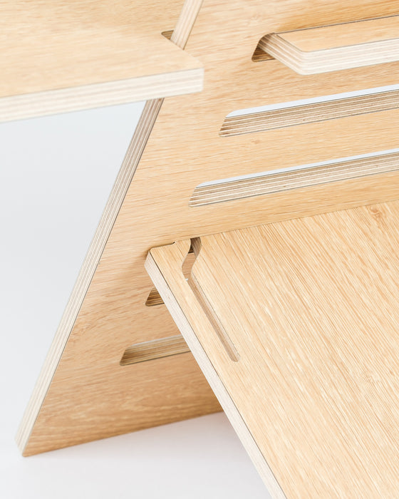 Tuote on valmistettu kestävästä suomalaisesta koivuvanerista, joka on laminoitu. Materiaalit ovat suunniteltu siten, että tuote kestää pitkään ja se on helppo ja nopea pistää kasaan työskentelyn jälkeen. Käytön jälkeen säilytys esimerkiksi kaapissa/komerossa on helppoa, koska se ei vie paljoa tilaa.